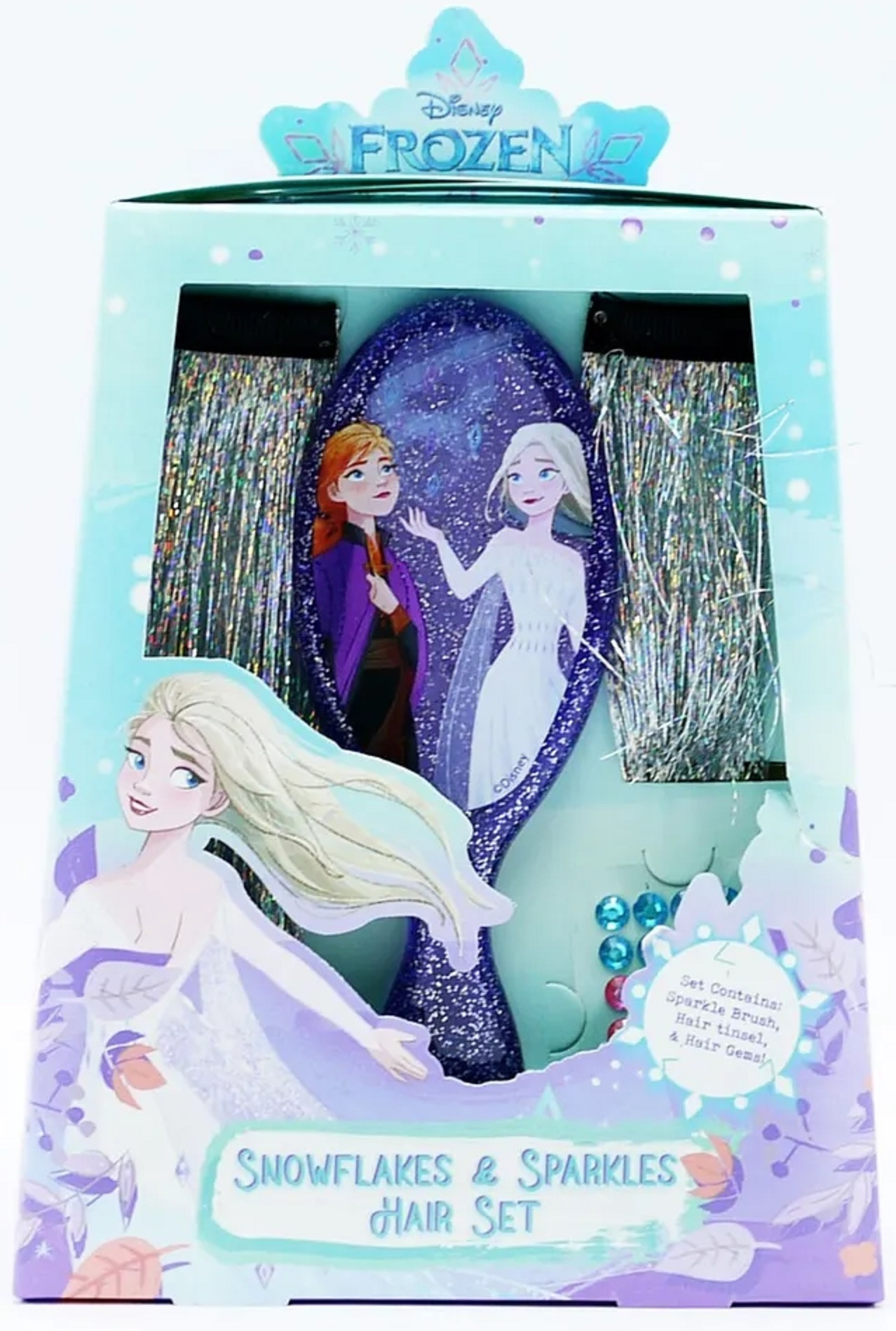 Disney Frozen hřeben + vlasové třpytivé prameny 2 kusy + glitry na vlasy, kosmetická sada pro děti