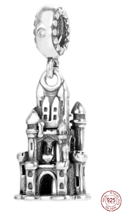Charm Sterlingové stříbro 925 Disney Popelka zámek, přívěsek na náramek, film