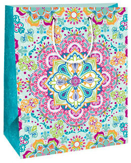 Ditipo Dárková papírová taška 26,4 x 13,7 x 32,4 cm světle zelená, barevné mandaly