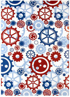Ditipo Dárkový balicí papír 70 x 200 cm bílý, modrá a bordó ozubená kolečka