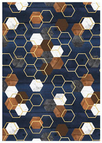 Ditipo Dárkový balicí papír 70 x 200 cm Tmavě modrý, hnědé bílé šestiúhelníky