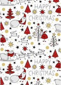 Ditipo Dárkový balicí papír 70 x 200 cm Vánoční bílý Santa sob stromečky