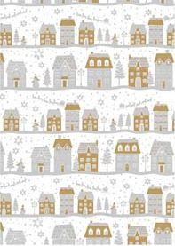 Ditipo Dárkový balicí papír 70 x 200 cm Vánoční bílý stříbrno-zlaté domky