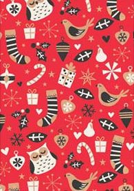 Ditipo Dárkový balicí papír 70 x 200 cm Vánoční KRAFT červený sovy ponožky dárky