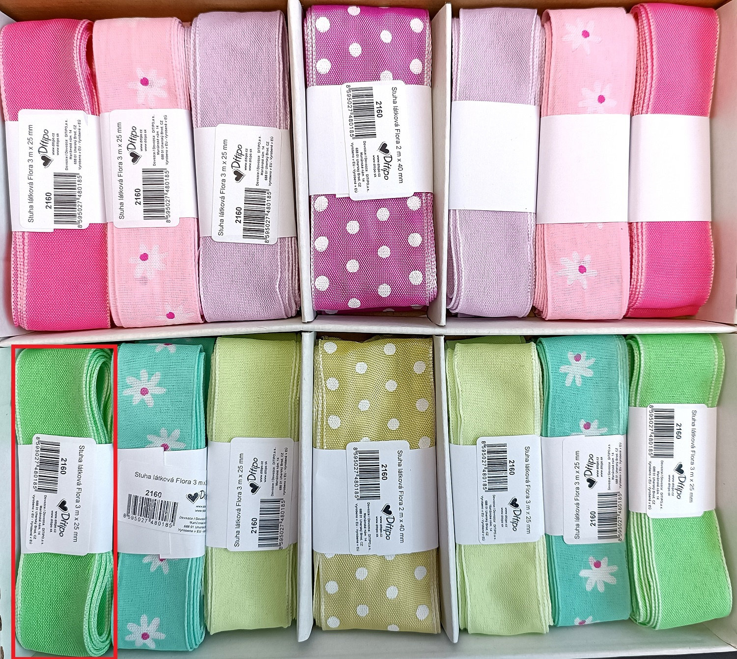 Ditipo Stuha látková Flora pastelová zelená 3 m x 25 mm