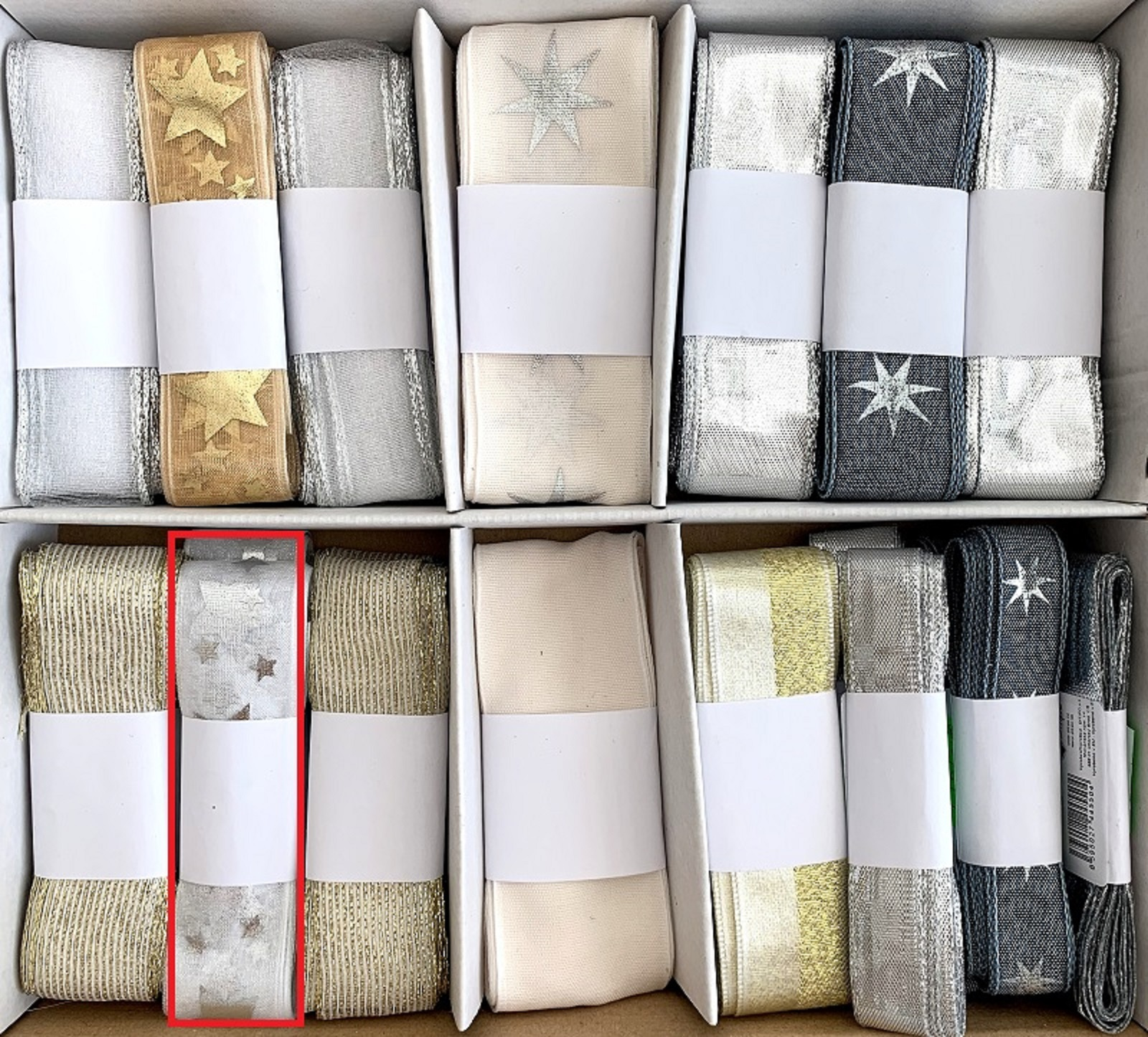 Ditipo Stuha látková s drátkem Bílá se stříbrnými hvězdami 3 m x 25 mm