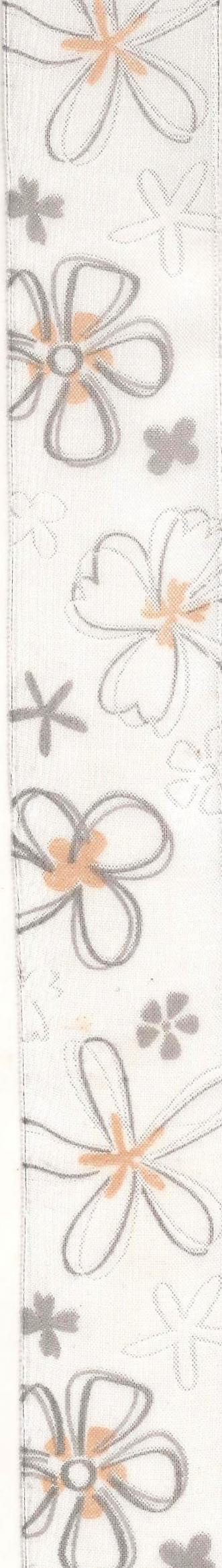 Ditipo Stuha látková s drátkem bílá šedo-béžový květinový motiv 2 m x 40 mm