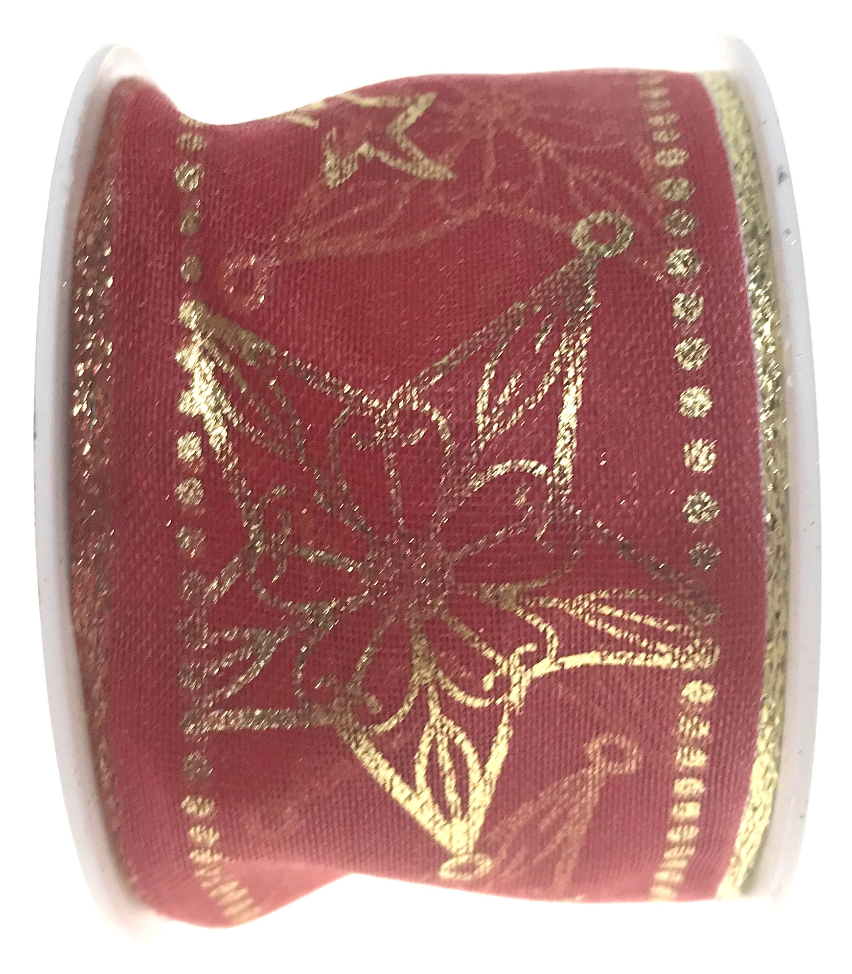 Ditipo Stuha látková s drátkem červená zlaté Hvězdy 2 m x 40 mm