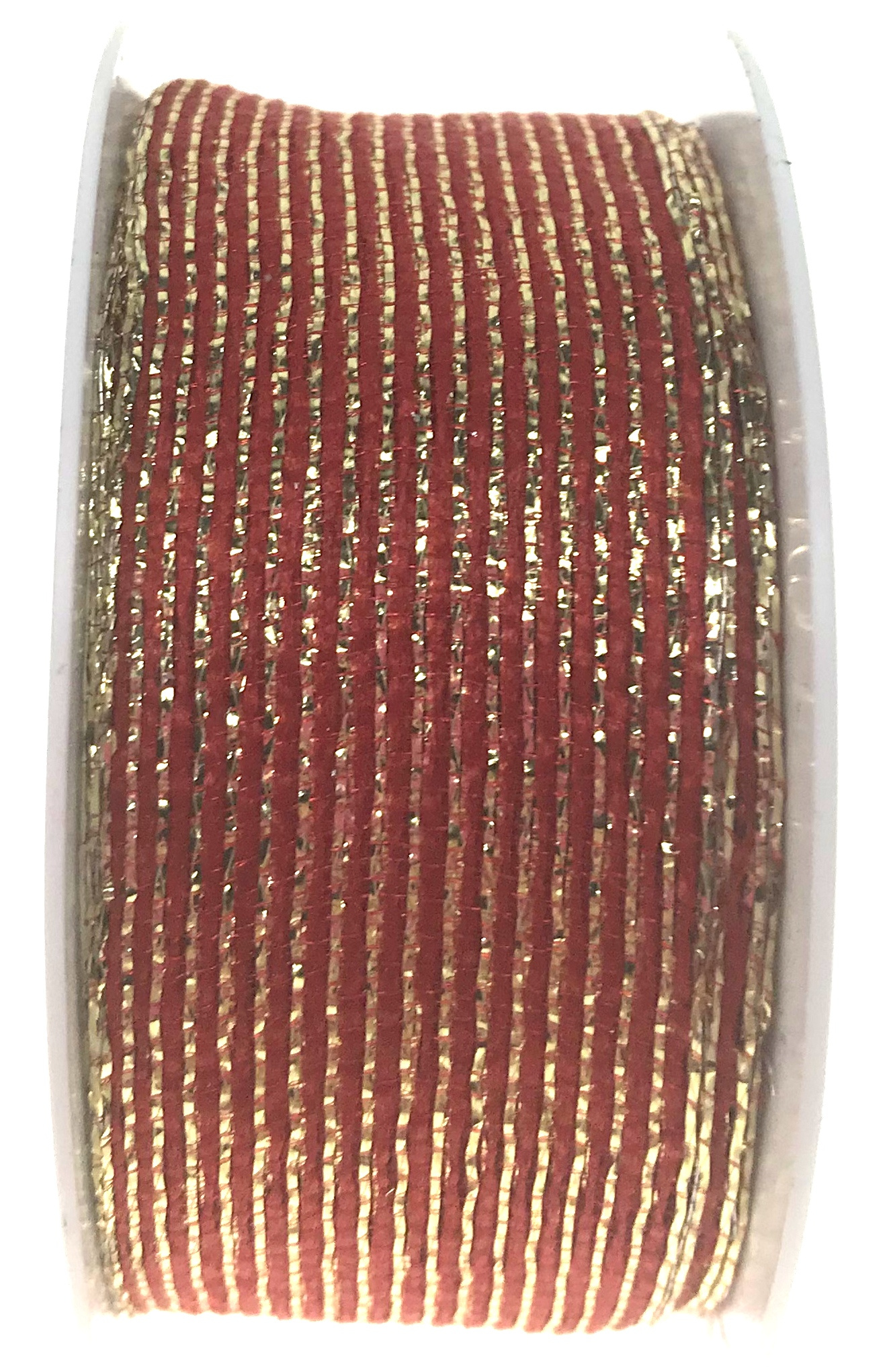 Ditipo Stuha látková s drátkem červená zlaté proužky 3 m x 25 mm