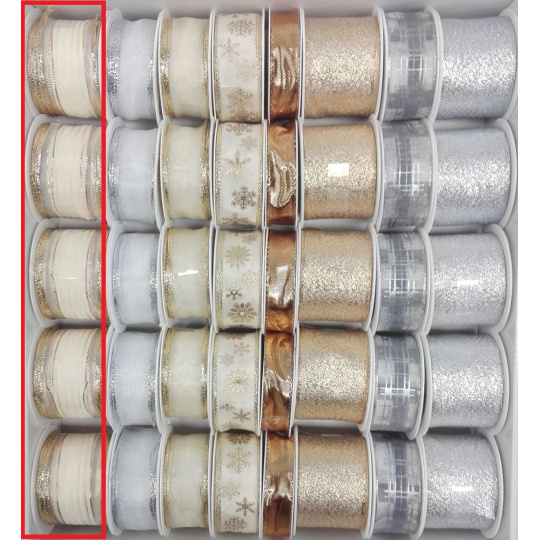 Ditipo Stuha látková s drátkem krémová se zlatým 2 m x 40 mm
