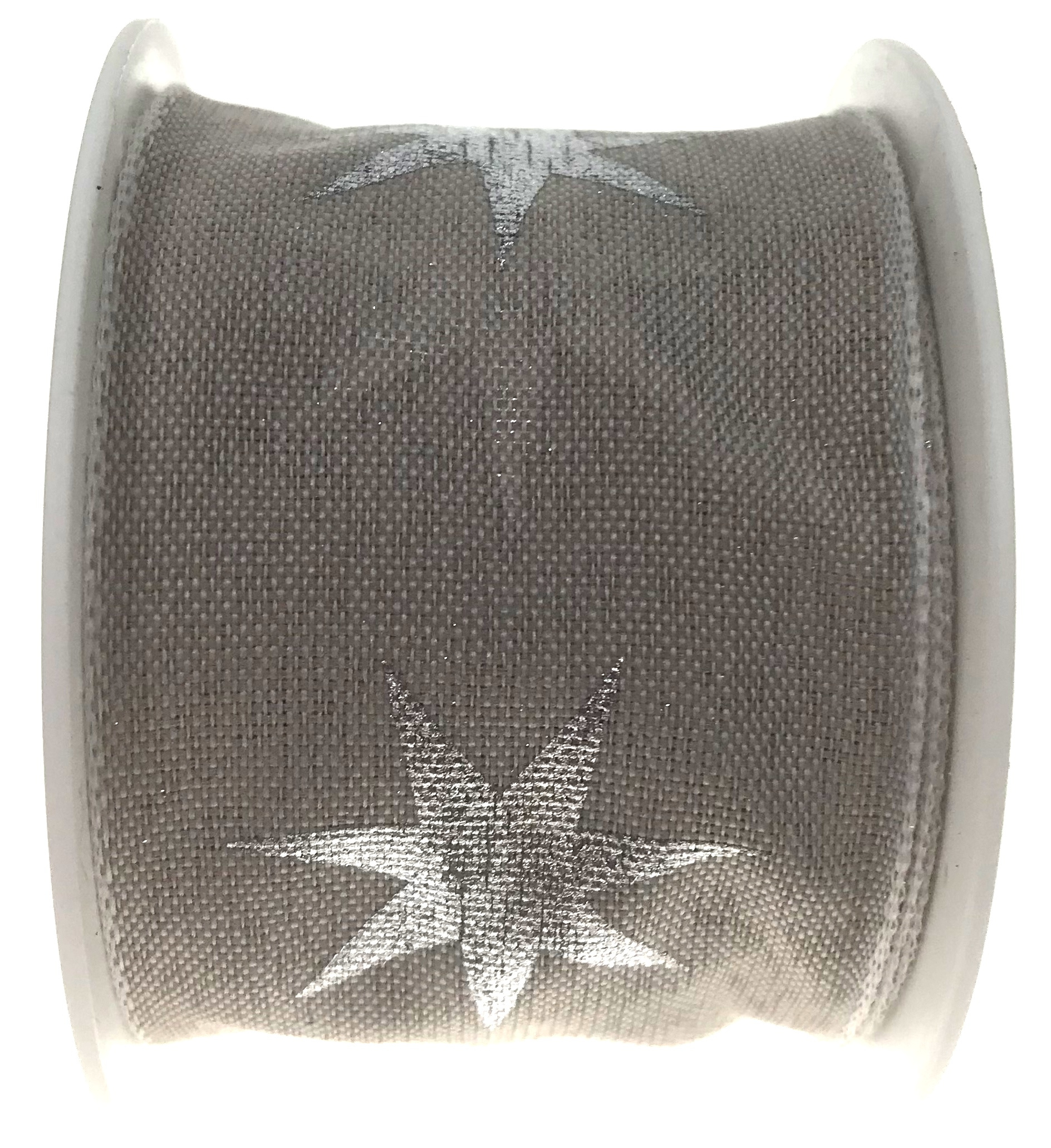 Ditipo Stuha látková s drátkem šedá stříbrné Hvězdy 2 m x 40 m
