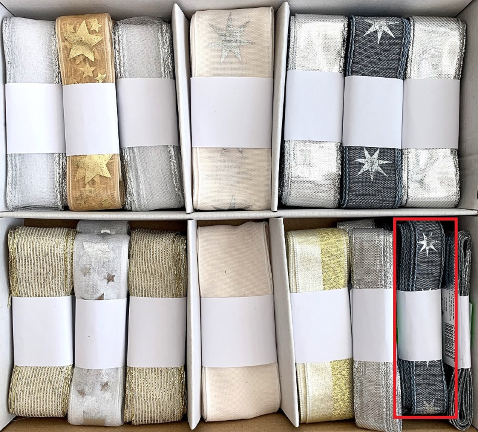Ditipo Stuha látková s drátkem Šedomodrá se stříbrnými hvězdami 4 m x 15 mm