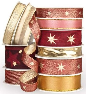 Ditipo Stuha látková vánoční s drátkem Růžová se zlatými okraji 4 m x 15 mm