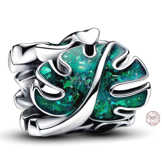 Charm Sterlingové stříbro 925 Tropická rostlina Monstera, korálek na náramek rostlina
