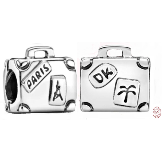 Charm Sterlingové stříbro 925 Paris - cestovatelský kufr, korálek na náramek cestování