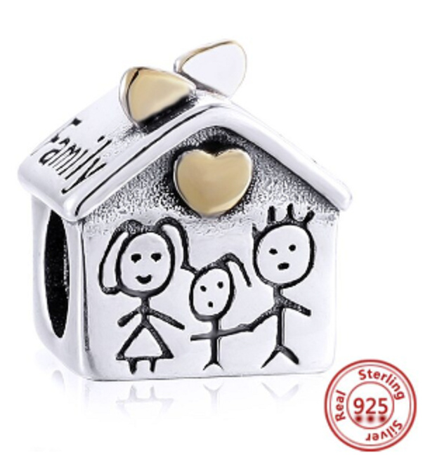 Charm Sterlingové stříbro 925 Dům kde bydlí láska, Maminka, Táta, dítě, korálek na náramek rodina
