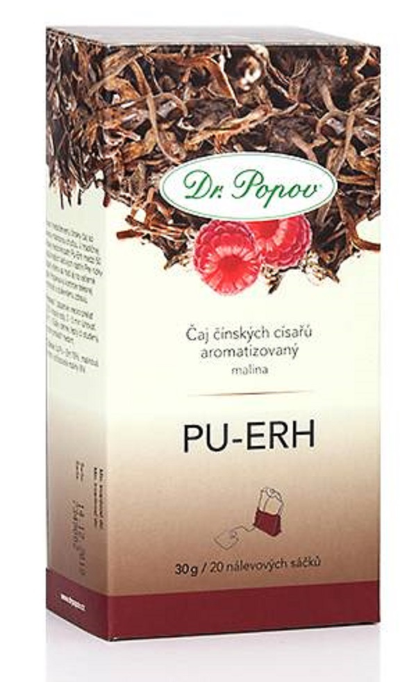 Dr. Popov Pu-Erh malina čaj Přispívá ke kontrole tělesné hmotnosti a duševnímu zdraví 30 g, 20 nálevových sáčků á 1,5 g