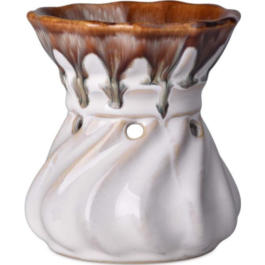 Bílo-hnědá keramická Aromalampa vytvoří během pár minut ve vašem domově příjemnou atmosféru. Prostory interiéru příjemně prosvětlí a díky možnosti neustálého obměňování vůní si vykouzlíte pokaždé atmosféru přesně podle svých představ. Aromalampa je skvělá pro rozpouštění vonného vosku nebo uvolňování esence vonného oleje či esenciálního oleje pomocí obyčejné čajové svíčky.