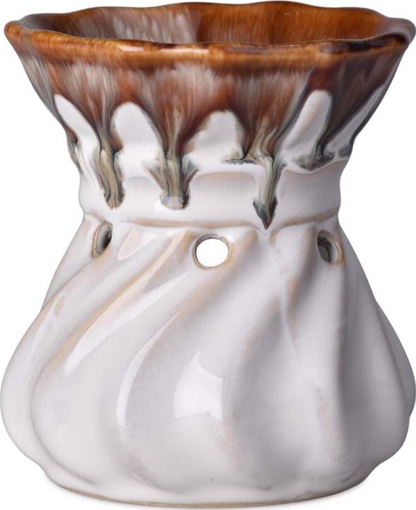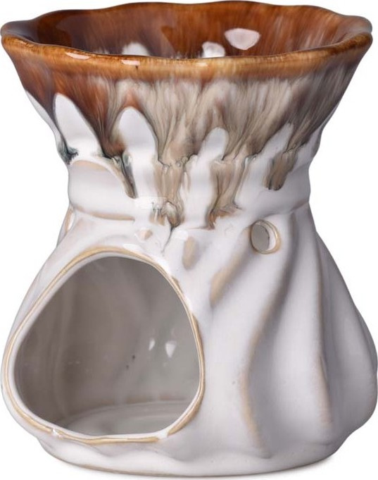 Bílo-hnědá keramická Aromalampa vytvoří během pár minut ve vašem domově příjemnou atmosféru. Prostory interiéru příjemně prosvětlí a díky možnosti neustálého obměňování vůní si vykouzlíte pokaždé atmosféru přesně podle svých představ. Aromalampa je skvělá pro rozpouštění vonného vosku nebo uvolňování esence vonného oleje či esenciálního oleje pomocí obyčejné čajové svíčky.