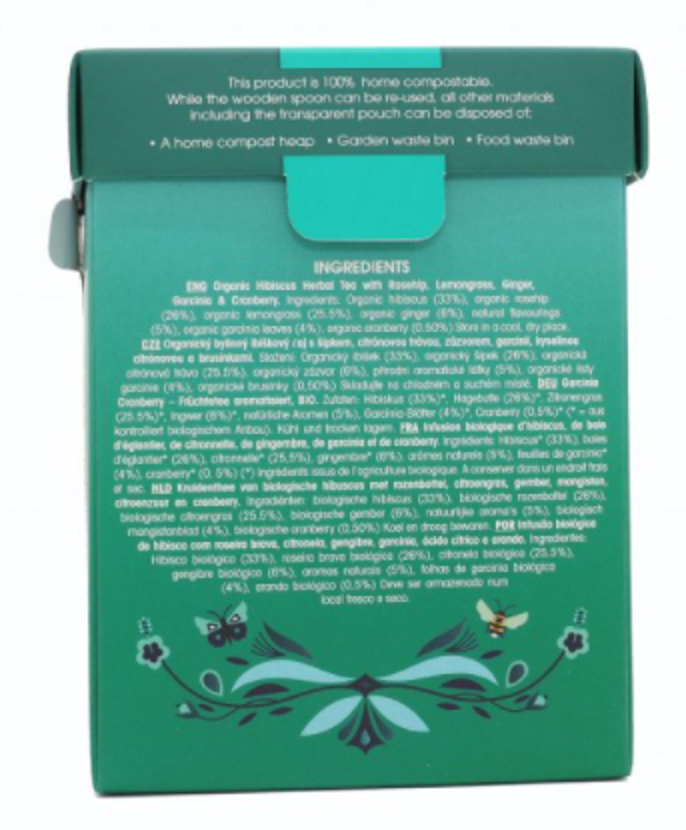 Sypaný čaj Brusinka, Ibišek a Šípek v bio kvalitě vás překvapí bylinkovou a osvěžující chutí. Čaj je zcela bez Kofeinu a je vhodný pro těhotné a kojící ženy a děti. Krabička obsahuje dřevnou odměrku, která také slouží jako spona. Sypaný čaj Brusinka, Ibišek a Šípek v bio kvalitě od značky English Tea Shop má bylinkovou osvěžující a jemnou chuť Garcinie. Čaj je zcela bez Kofeinu a je vhodný pro děti, těhotné a kojící ženy. English Tea Shop nabízí čistě přírodní čaje bez syntetických příchutí a barviv. English Tea Shop nese CERTIFIKÁTY bio, Fairtrade a veškerý obalový materiál i samotné čajové sáčky jsou biologicky odbouratelné a recyklovatelné. Jejich výroba je zcela bezuhlíková.
