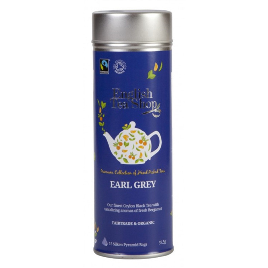 English Tea Shop Bio Černý čaj Earl Grey 15 kusů bioodbouratelných pyramidek čaje v recyklovatelné plechové dóze 30 g