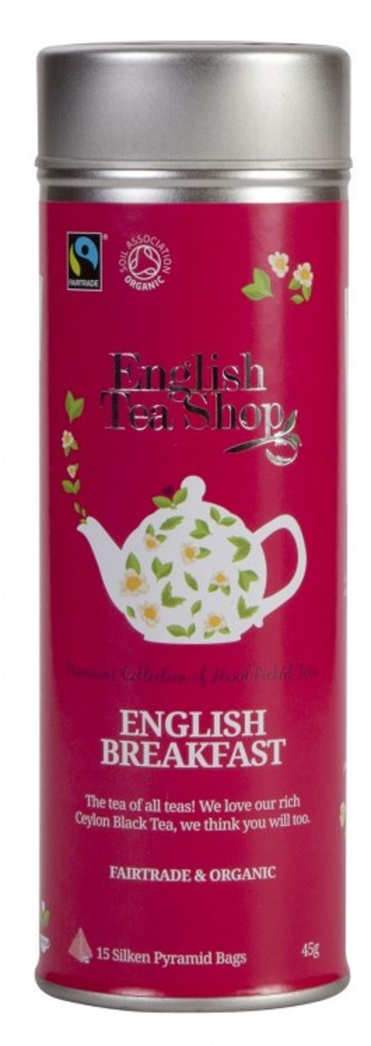 English Tea Shop Bio Černý čaj English Breakfast 15 kusů bioodbouratelných pyramidek čaje v recyklovatelné plechové dóze 30 g