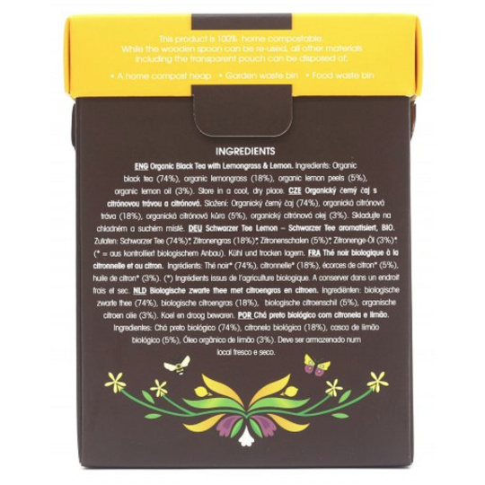 černý čaj (74%)*, Citronová tráva *(17%)*, Citronová kůra (4%)*, přírodní Příchuť Citronu (4%), přírodní Kyselina Citronová (1%)