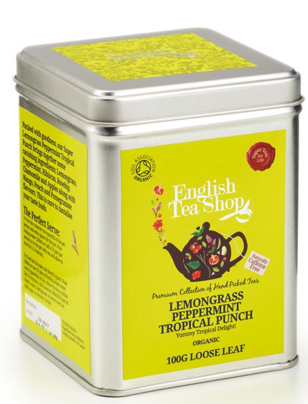 Sypaný čaj Citrónová tráva, Máta a tropické ovoce v bio kvalitě od značky English Tea Shop vás potěší svou svěží, ovocnou a bylinkovou chutí. Čaj je navíc zcela bez Kofeinu, tudíž je vhodný pro těhotné a kojící ženy a pro děti. Zároveň osvěží vaše tělo i mysl. English Tea Shop nabízí čistě přírodní čaje bez syntetických příchutí a barviv. English Tea Shop nese CERTIFIKÁTY bio, Fairtrade a veškerý obalový materiál i samotné čajové sáčky jsou biologicky odbouratelné a recyklovatelné. Jejich výroba je zcela bezuhlíková.