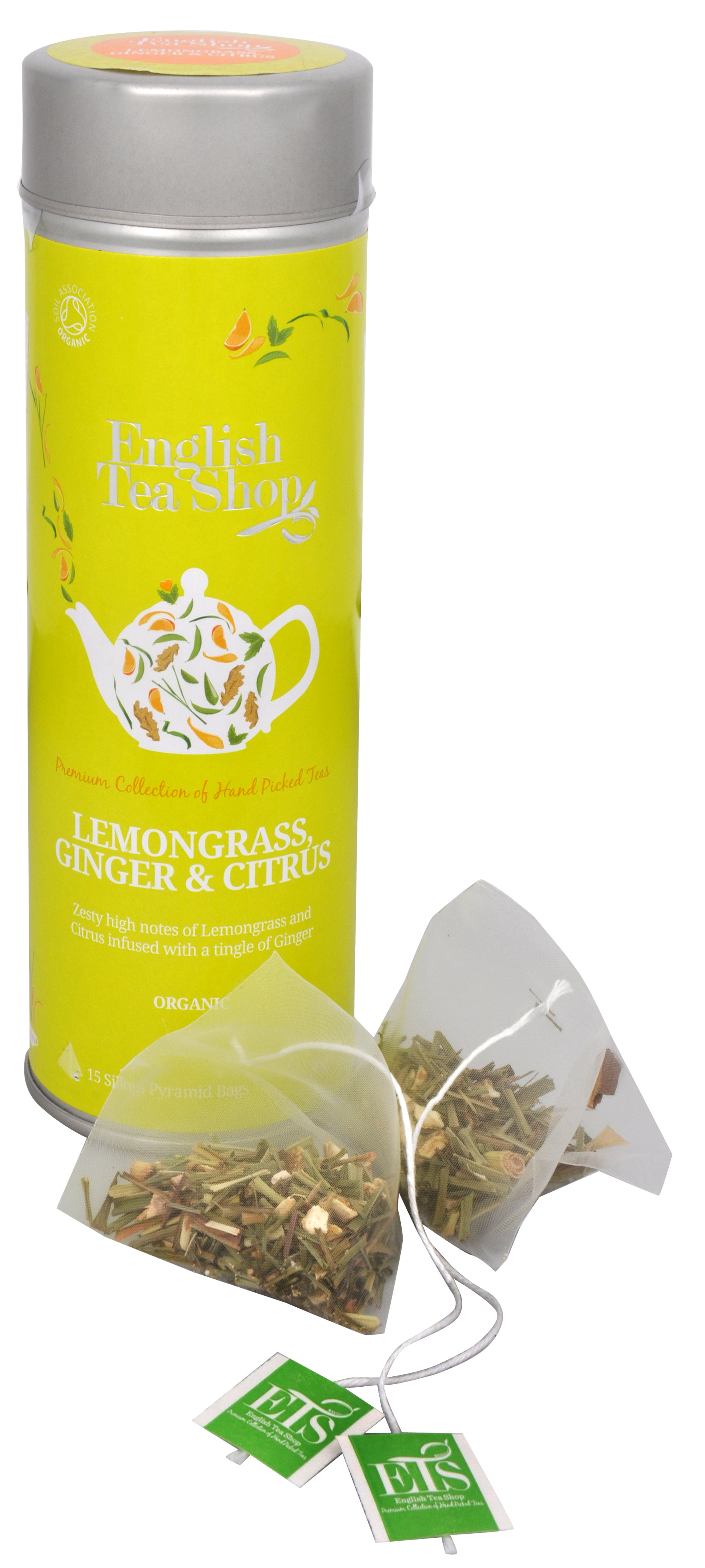 Čaj Citrónová tráva, zázvor a Citrusy v bio kvalitě vás příjemně překvapí svou výraznou ovocnou chutí. Osvěží tělo i mysl. Čaj je přirozeně bez teinu. Čaj Citrónová tráva, zázvor a Citrusy v bio kvalitě od značky English Tea Shop vás překvapí svěží a výraznou chutí, která je přirozeně bez teinu. English Tea Shop nabízí čistě přírodní čaje bez syntetických příchutí a barviv. English Tea Shop nese CERTIFIKÁTY bio, Fairtrade a veškerý obalový materiál i samotné čajové sáčky jsou biologicky odbouratelné a recyklovatelné. Jejich výroba je zcela bezuhlíková.