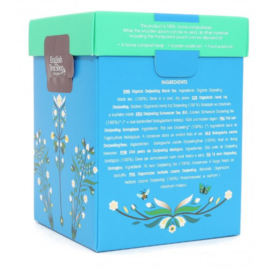 - English Tea Shop nese CERTIFIKÁTY bio, Fairtrade a veškerý obalový materiál i samotné čajové sáčky jsou biologicky odbouratelné a recyklovatelné