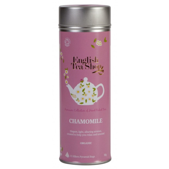 English Tea Shop Bio Heřmánek čistý 15 kusů bioodbouratelných pyramidek čaje v recyklovatelné plechové dóze 30 g
