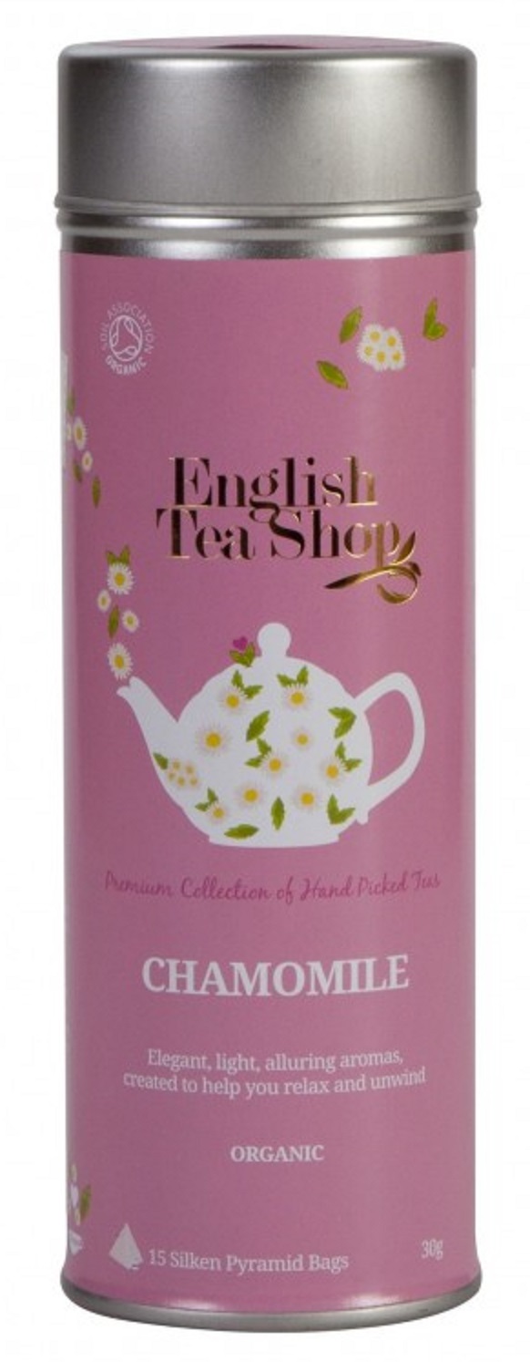 English Tea Shop Bio Heřmánek čistý 15 kusů bioodbouratelných pyramidek čaje v recyklovatelné plechové dóze 30 g