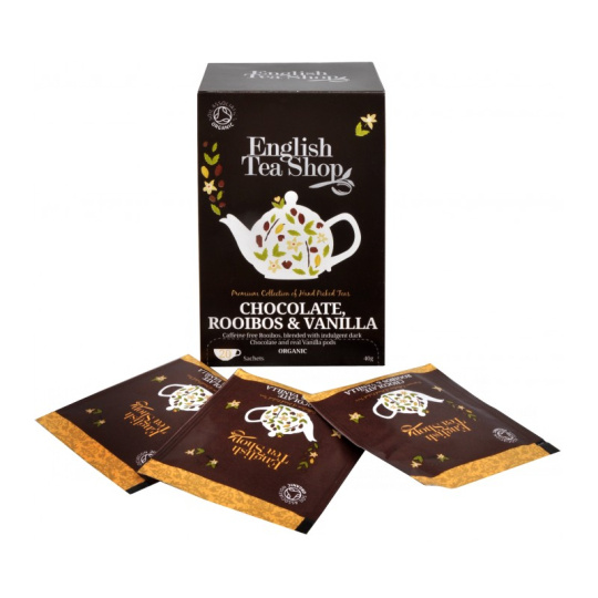 English Tea Shop Bio Rooibos Čokoláda a Vanilka čaj 20 kusů bioodbouratelných pyramidek čaje 40 g