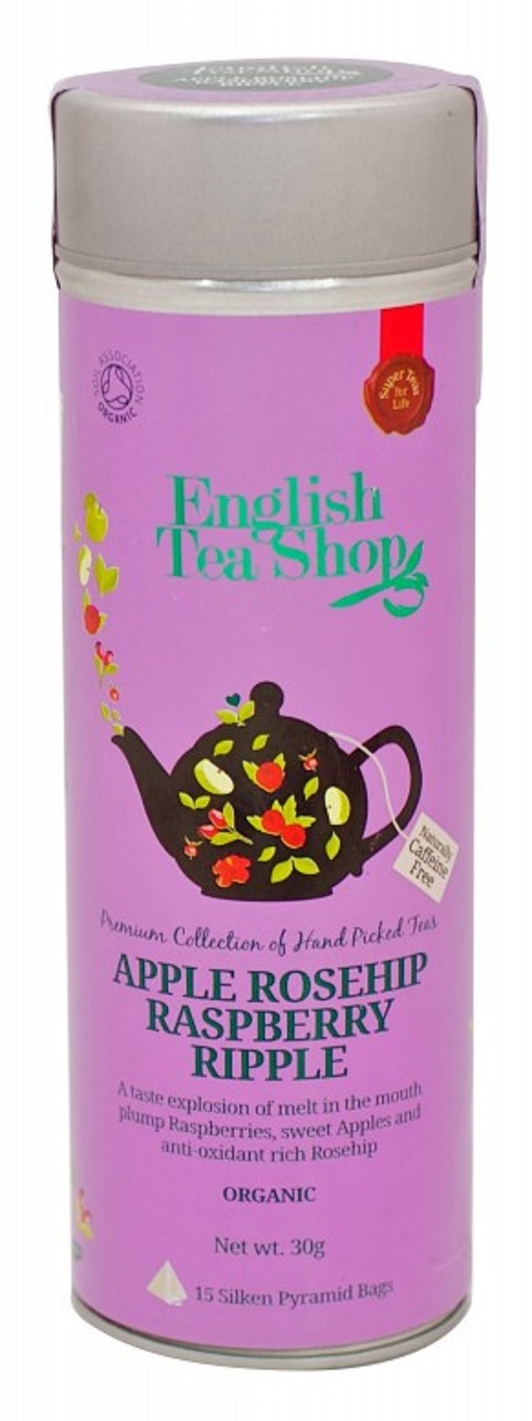 English Tea Shop Bio Šípek a Malina 15 kusů bioodbouratelných pyramidek čaje v recyklovatelné plechové dóze 30 g
