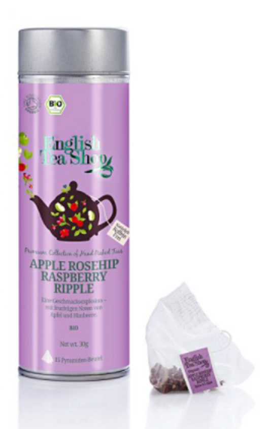 Čaj Šípek a malina v bio kvalitě od značky English Tea Shop má osvěžující a jemnou chuť lesního ovoce. Kombinace Šípku, jablka, malin, černého Rybízu a Granátového jablka vytváří sladkou ovocnou chuť.