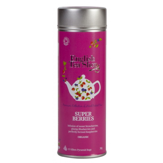 English Tea Shop Bio Super ovocný čaj 15 kusů bioodbouratelných pyramidek čaje v recyklovatelné plechové dóze 30 g
