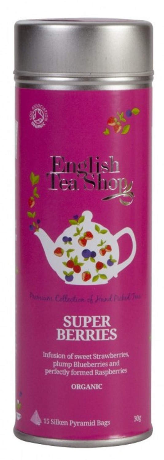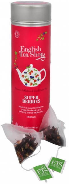 English Tea Shop Bio Super ovocný čaj 15 kusů bioodbouratelných pyramidek čaje v recyklovatelné plechové dóze 30 g