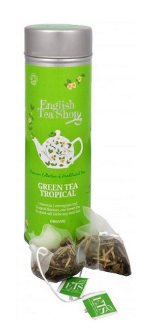 Zelený čaj s tropickým ovocem v bio kvalitě vás potěší svou svěží a ovocnou chutí. Díky obsahu teinu vás nabije energií. Zelený čaj s tropickým ovocem v bio kvalitě od značky English Tea Shop vás potěší svou svěží a ovocnou chutí. Zároveň povzbudí vaše tělo i mysl a nabije vás energií. Zelený čaj prochází minimální oxidací, tudíž má vysoký podíl minerální látek, tříslovin a fukamarinů. Čaj je vhodný pokud chcete udržet svoji váhu a přispívá k ochraně buněk před oxidačním Stresem. Navíc Zelený čaj obsahuje Antioxidanty, které brání předčasnému stárnutí. Také má protiplísňové a hojící účinky.