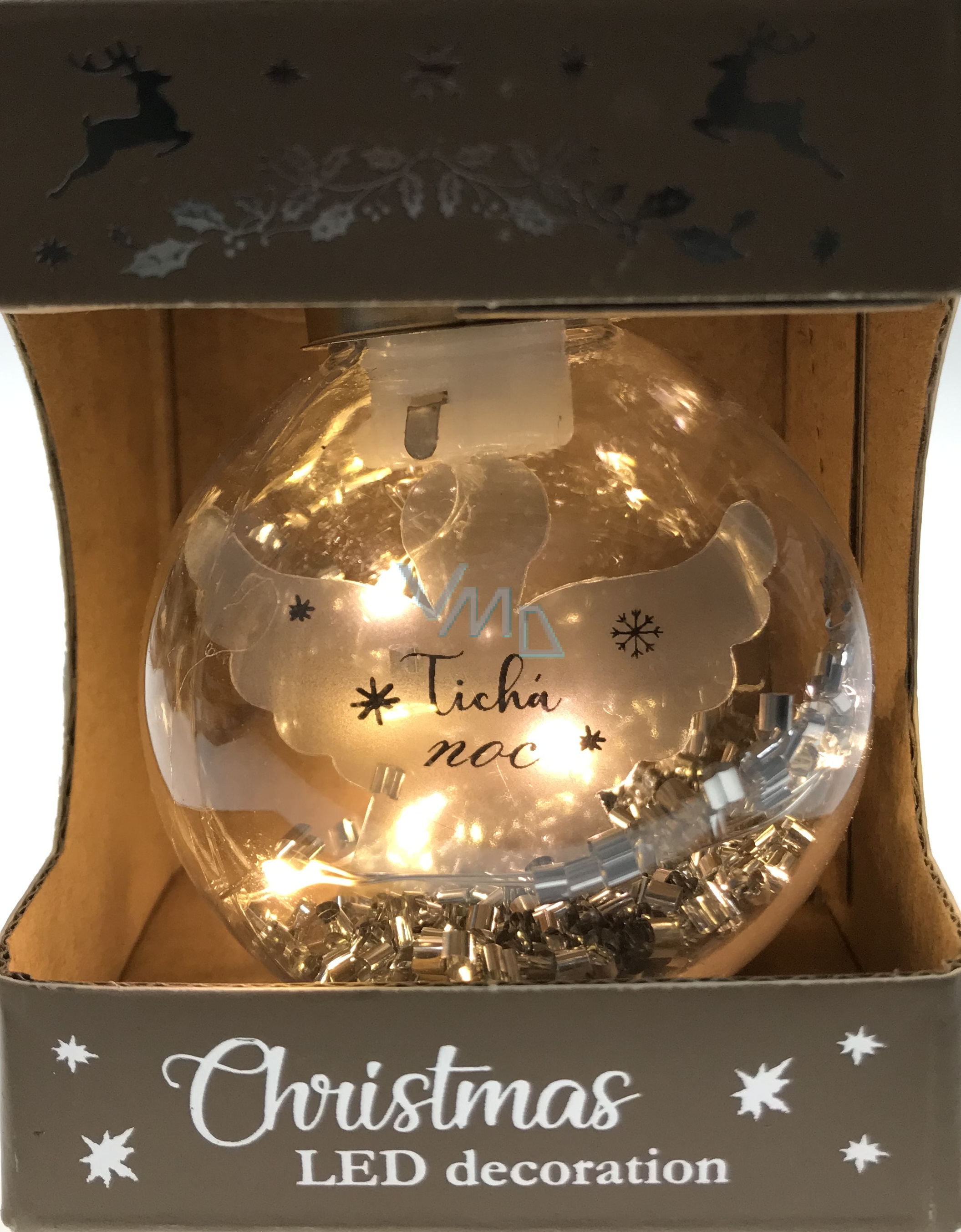 Epee Anděl stříbrný zářivá ozdoba s LED - Tichá noc na zavěšení 6 cm