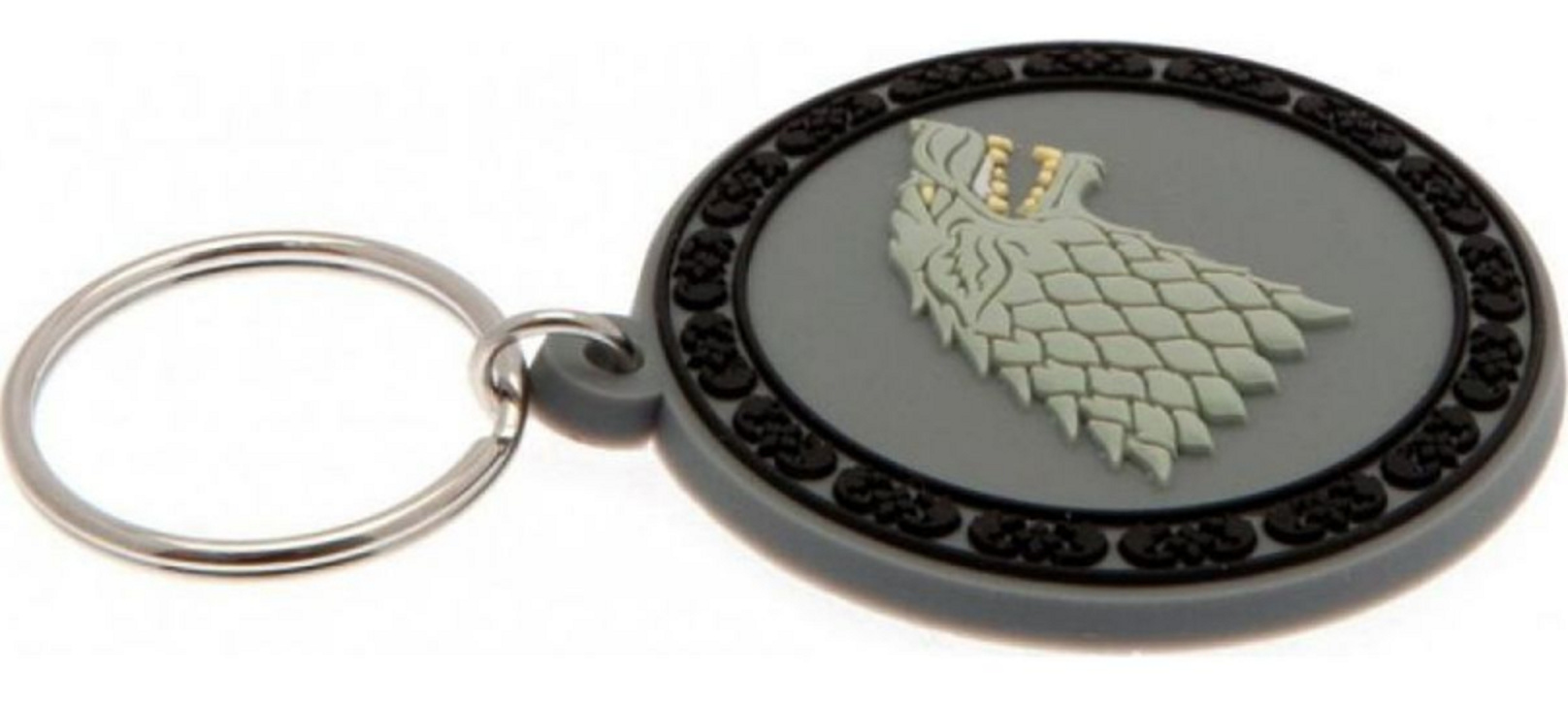 Gumová klíčenka s erbem Starků ze Hry o trůny - Game of Thrones. Klíčenka má průměr cca 4,5 cm