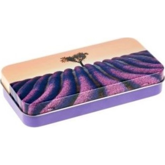 - plechová krabička s obrázkem stromu v levandulovém poli