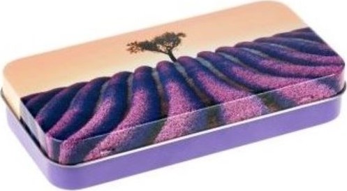 - plechová krabička s obrázkem stromu v levandulovém poli