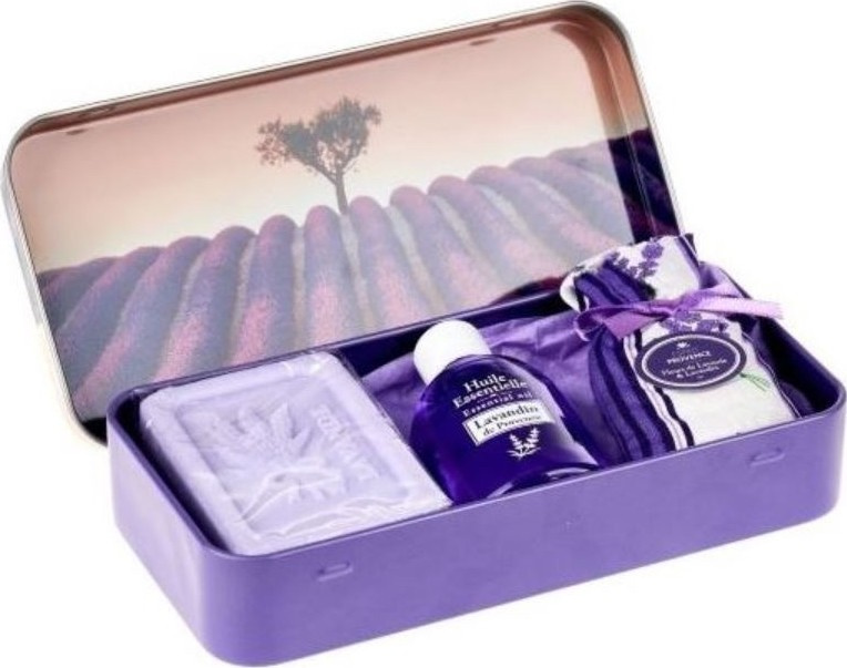 Šetrně čistící mýdlo, které zvláční vaši pokožku, vonný pytlíček a esenciální levandulový olej. To vše najdete v praktické plechové krabičce s motivem stromů. Ideální na cesty nebo jako dárek, který vás zahalí do čisté vůně provensálské levandule.