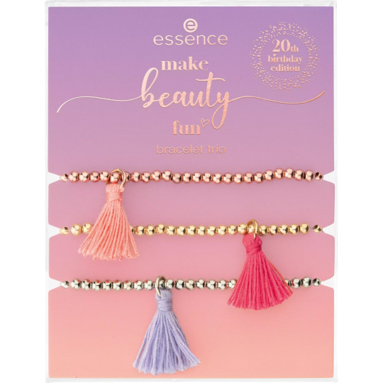 Trio náramků je ideální pro sdílení s vašimi BFF nebo jako dárek. Sada se skládá ze tří korálkových náramků - Stříbrného, zlatého a růžovo-zlatého s malými třásněmi. Třpytivé metalické korálkové náramky elegantně doplní váš look.