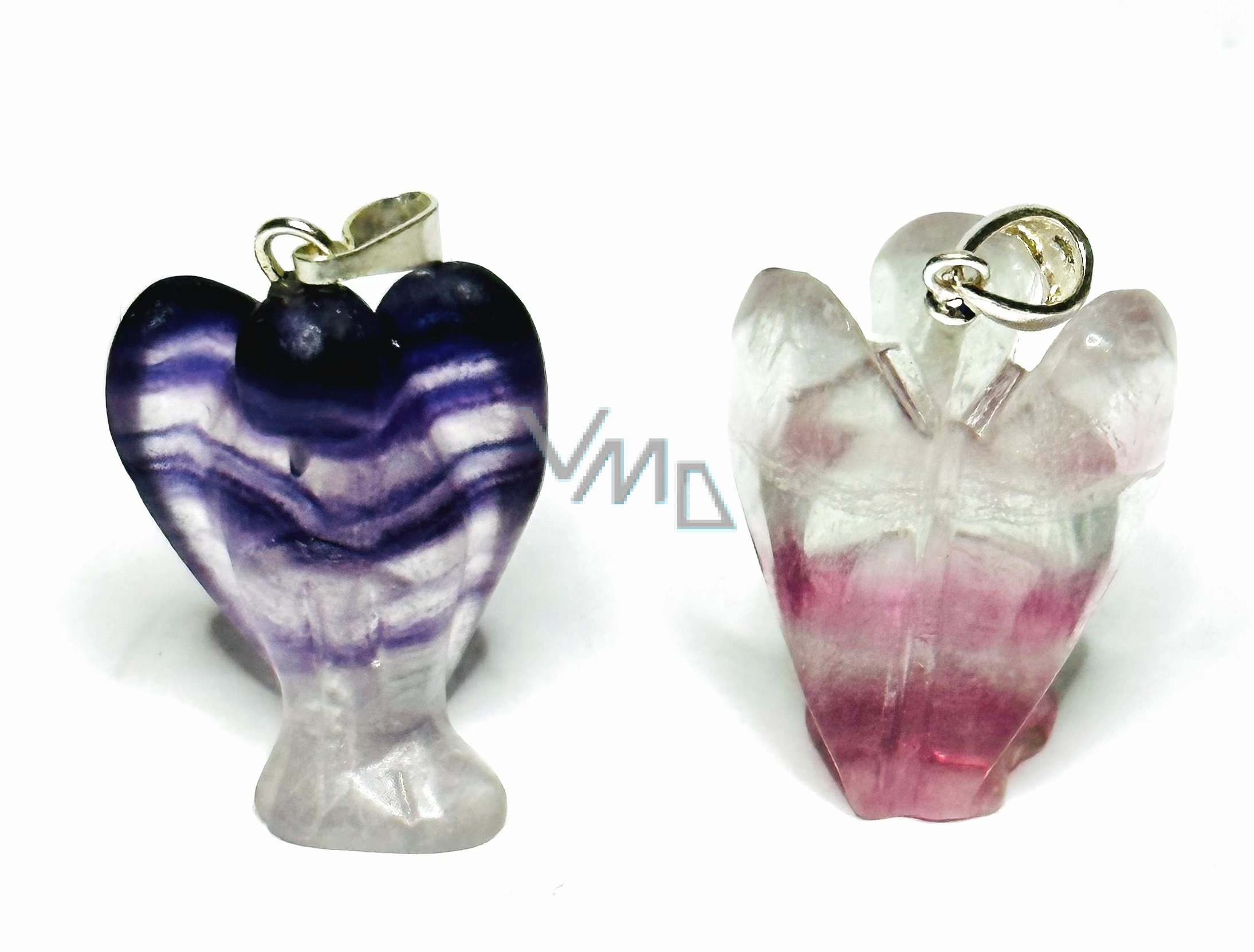 Fluorit Anděl strážný přívěšek přírodní kámen, ručně broušený 2,6 cm, kámen géniů