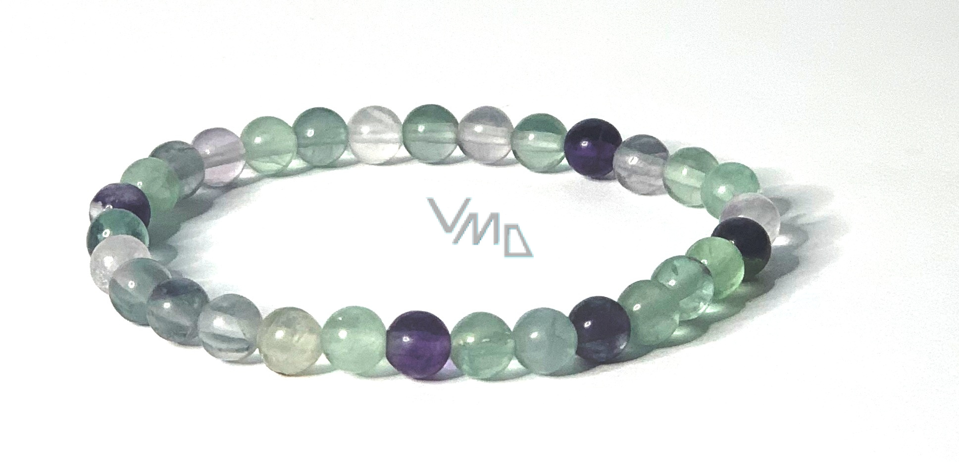Fluorit zeleno-čirý náramek elastický přírodní kámen, kulička 6 mm / 16 -17 cm, kámen géniů