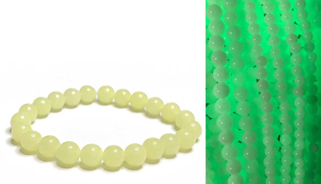 Jade Luminois Light Fosforeskující, žlutě svítí ve tmě, náramek elastický přírodní kámen, kulička 8 mm / 16 - 17 cm