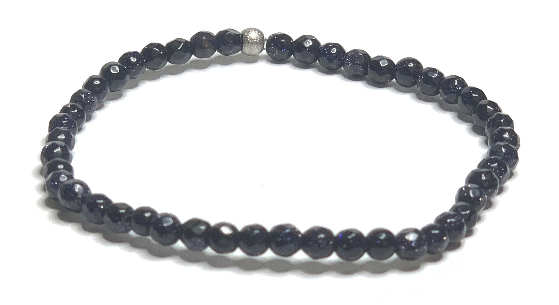Goldstone modrý Avanturin fazet náramek elastický, kulička 4 mm / 16 - 17 cm, kámen ambicí