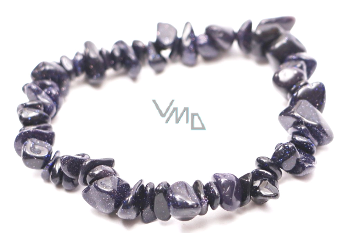 Goldstone / Avanturín modrý náramek elastický sekaný přírodní kámen 16 cm, pro děti, kámen ambicí