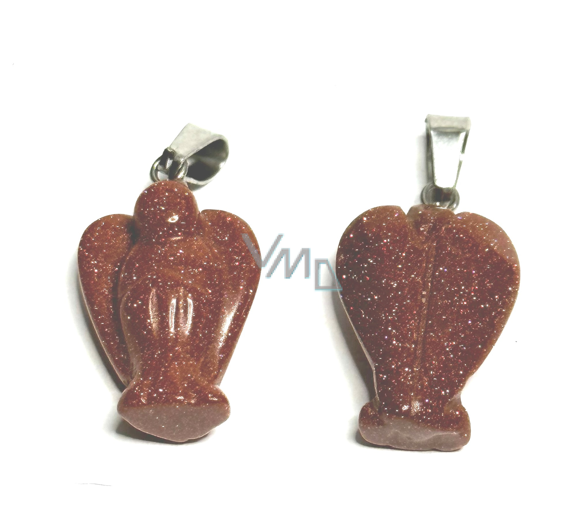 Goldstone zlatý Anděl strážný přívěsek ručně broušený 2 - 2,2 cm, kámen ambicí
